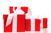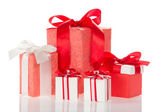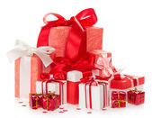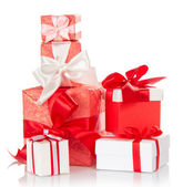 jasne kolorowe pudełka z darów, ozdobiony wstążkami i łuki