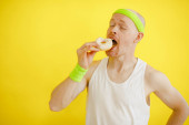 Zdjęcie "Nadwaga człowiek z burgerem na tle koloru" może być wykorzystywane do celów osobistych i komercyjnych zgodnie z warunkami zakupionej licencji Royalty-free. Obraz jest dostępny do pobrania w jakości wysokiej rozdzielczości do 5760x3840.