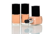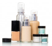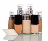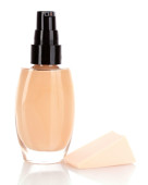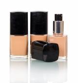 dwóch małych butelkach z podstawą makijażu, na białym tle