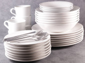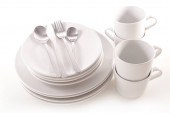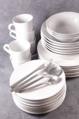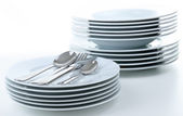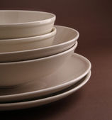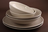 stos talerzy pusty kubek i miska izolowane na białym tle