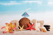 klatki piersiowej z morza cockleshells i gwiazd na morze piasku