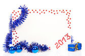 czerwona kartka na nowy rok 2013 błyskotka niebieski i niebieski piłka na białym tle
