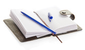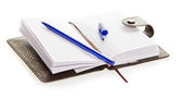 Otwórz Notatnik, Zamknij się, biały na białym tle na
