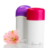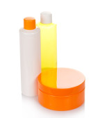zbiór różnych piękno higieniczne pojemniki i chryzantemy, na białym tle