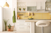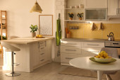 Zdjęcie "Nowoczesne wnętrze kuchni ze stylowym drewnianym stołem" może być wykorzystywane do celów osobistych i komercyjnych zgodnie z warunkami zakupionej licencji Royalty-free. Obraz jest dostępny do pobrania w jakości wysokiej rozdzielczości do 5760x3840.