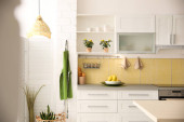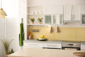 Zdjęcie "Nowoczesne wnętrze kuchni ze stylowymi białymi meblami" może być wykorzystywane do celów osobistych i komercyjnych zgodnie z warunkami zakupionej licencji Royalty-free. Obraz jest dostępny do pobrania w jakości wysokiej rozdzielczości do 5760x3840.
