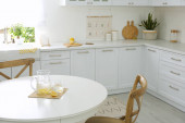 Nowoczesne wnętrze kuchni ze stylowymi białymi meblami