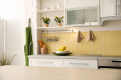Zdjęcie "Nowoczesne wnętrze kuchni ze stylowym drewnianym stołem" może być wykorzystywane do celów osobistych i komercyjnych zgodnie z warunkami zakupionej licencji Royalty-free. Obraz jest dostępny do pobrania w jakości wysokiej rozdzielczości do 5760x3840.