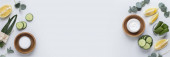 Widok z góry sosu tzatziki ze składnikami i przyprawami na kamiennym tle