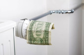 rolka papieru toaletowego z banknotami dolarowymi na białym