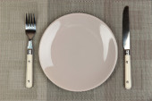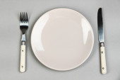 nóż, kolor płytki i widelec, na kolor tła
