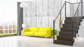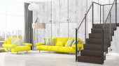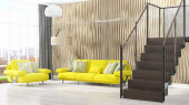 Nowoczesny design wnętrza pokoju dziennego w stylu skandynawskim. 3d renderowanie