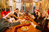 Szczęśliwi współpracownicy świętują podczas imprezy firmowej na Nowy Rok i Boże Narodzenie