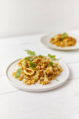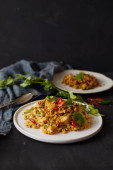 Mieszać smażone kałamarnice z curry w proszku, tajskie jedzenie