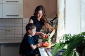 Kuchnia mama syn umyć owoce i warzywa