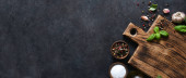 Zestaw tradycyjnej chińskiej herbaty na czarnym tle kamienia. Herbata w czajniczku i filiżance. Widok góry. wolne miejsce na tekst.
