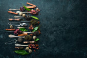 Zdjęcie "Zestaw tradycyjnej chińskiej herbaty na czarnym tle kamienia. Herbata w czajniczku i filiżance. Widok góry. wolne miejsce na tekst." może być wykorzystywane do celów osobistych i komercyjnych zgodnie z warunkami zakupionej licencji Royalty-free. Obraz jest dostępny do pobrania w jakości wysokiej rozdzielczości do 5760x3840.