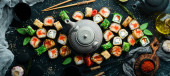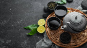 Zdjęcie "Zestaw czarnej, zielonej, owocowej i ziołowej herbaty na czarnym kamiennym tle. Herbata w czajniczku i filiżance. Widok góry. wolne miejsce na tekst." może być wykorzystywane do celów osobistych i komercyjnych zgodnie z warunkami zakupionej licencji Royalty-free. Obraz jest dostępny do pobrania w jakości wysokiej rozdzielczości do 5760x3840.