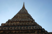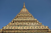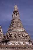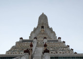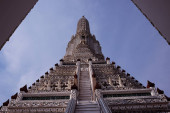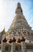 Pięknie pomalowana biała wieża świątyni buddyjskiej Wat Arun w Bangkoku.