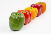 Świeża kolorowa papryka na białym tle. Witaminy ogółem
