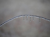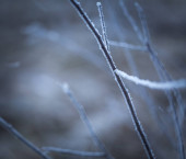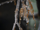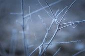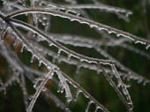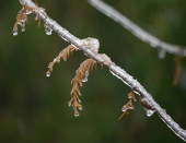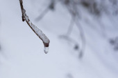 Zakrzywione gałązki drzewa całkowicie pokryte lodem i śniegiem