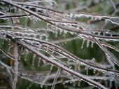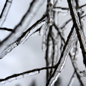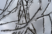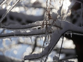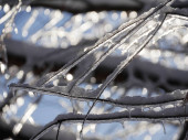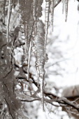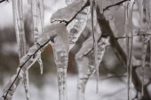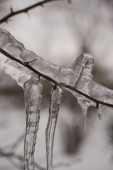 Icicles wiszące zamrożone gałązki drzewa, z rozmytym tle