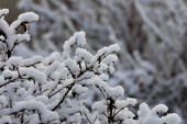 Zbliżenie gałęzi drzew pokrytych lodem i śniegiem.