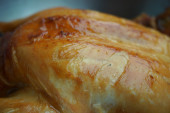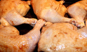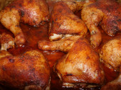 Tło zbliżenie domowe pieczone kawałki kurczaka z sosem sojowym i przyprawami