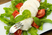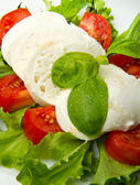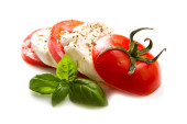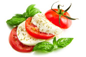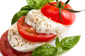 bazylia pomidory mozzarella na białym tle