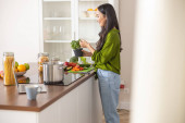 Zdjęcie "Uśmiechnięta Azjatka przygotowuje śniadanie" może być wykorzystywane do celów osobistych i komercyjnych zgodnie z warunkami zakupionej licencji Royalty-free. Obraz jest dostępny do pobrania w jakości wysokiej rozdzielczości do 5760x3840.