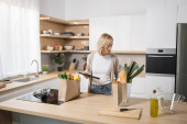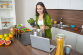 Atrakcyjna nowoczesna kobieta uśmiechnięta do pracy