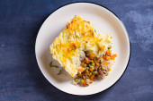 Zdjęcie "Shepherd 's Pie lub Cottage Pie na talerzu, szare tło. Zdjęcie poziome nad głową" może być wykorzystywane do celów osobistych i komercyjnych zgodnie z warunkami zakupionej licencji Royalty-free. Obraz jest dostępny do pobrania w jakości wysokiej rozdzielczości do 5760x3840.