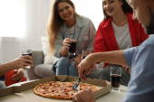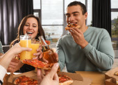 Zdjęcie "Grupa przyjaciół o zabawy party z pyszną pizzą w kawiarni" może być wykorzystywane do celów osobistych i komercyjnych zgodnie z warunkami zakupionej licencji Royalty-free. Obraz jest dostępny do pobrania w jakości wysokiej rozdzielczości do 5760x3840.