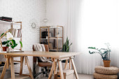 Stylowe wnętrze pokoju z zielonych roślin. Wystrój wnętrz