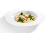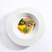 Filet z łososia z pieczonym szpinakiem i pieczonym musem korzeniowym selera