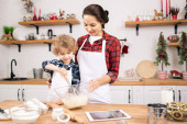 Zdjęcie "Cute boy i jego matka toczenia ciasta podczas gotowania domowe ciasto przy stole w kuchni" może być wykorzystywane do celów osobistych i komercyjnych zgodnie z warunkami zakupionej licencji Royalty-free. Obraz jest dostępny do pobrania w jakości wysokiej rozdzielczości do 5760x3840.