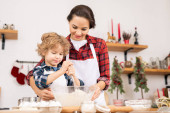 Zdjęcie "Uroczy chłopiec patrząc na ciebie i wyciągając rękę do ciasta podczas pochylania się nad drewnianym stołem przed jego mama gotowania" może być wykorzystywane do celów osobistych i komercyjnych zgodnie z warunkami zakupionej licencji Royalty-free. Obraz jest dostępny do pobrania w jakości wysokiej rozdzielczości do 5760x3840.