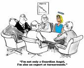 cartoon ilustracji Anioł siedzi na ramieniu mężczyzny