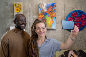 Zdjęcie "Szczęśliwy mieszane wyścig dziewczyna w smart casual podejmowania selfie podczas przymierzania nowego okularu w sklepie optycznym" może być wykorzystywane do celów osobistych i komercyjnych zgodnie z warunkami zakupionej licencji Royalty-free. Obraz jest dostępny do pobrania w jakości wysokiej rozdzielczości do 5760x3840.