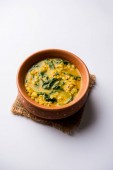 Dahi Bhindi lub Okra w sosie jogurtowym, podawane w misce lub karahi, selektywne skupienie