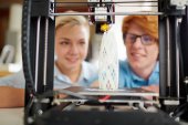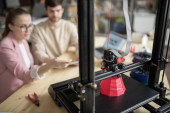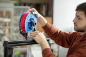 Zdjęcie "Młody technik ze śrubokrętem naprawiającym głowicę drukującą lub mocującym jeden z paneli drukarki 3D w biurze" może być wykorzystywane do celów osobistych i komercyjnych zgodnie z warunkami zakupionej licencji Royalty-free. Obraz jest dostępny do pobrania w jakości wysokiej rozdzielczości do 5760x3840.
