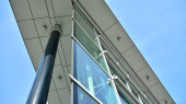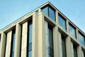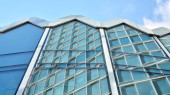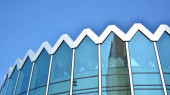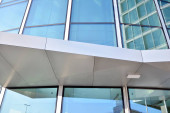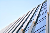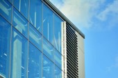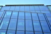 mur de l'immeuble de bureaux moderne en acier et de verre avec un ciel bleu