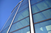 mur de l'immeuble de bureaux moderne en acier et de verre avec un ciel bleu