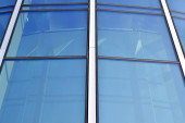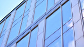 mur de l'immeuble de bureaux moderne en acier et de verre avec un ciel bleu