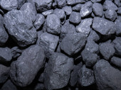 Metalowa łopata z drewnianą rączką zbierająca kamienie węglowe ze stosu