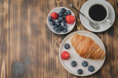 Pyszne śniadanie ze świeżymi jagodami. filiżanka kawy, śmietanka i