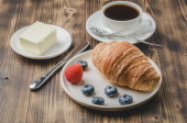 Zdjęcie "Pyszne śniadanie ze świeżymi jagodami. filiżanka kawy, śmietanka i " może być wykorzystywane do celów osobistych i komercyjnych zgodnie z warunkami zakupionej licencji Royalty-free. Obraz jest dostępny do pobrania w jakości wysokiej rozdzielczości do 5760x3840.