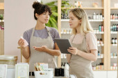 Zdjęcie "Młoda blondynka w brązowym fartuchu pachnąca aromatyczną esencją w małej butelce przy wyborze zapachu do mydła" może być wykorzystywane do celów osobistych i komercyjnych zgodnie z warunkami zakupionej licencji Royalty-free. Obraz jest dostępny do pobrania w jakości wysokiej rozdzielczości do 5760x3840.
