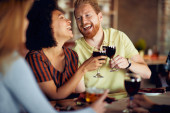 Zdjęcie "Grupa najlepszych przyjaciół siedzi w restauracji na kolację i wznosi toast z winem." może być wykorzystywane do celów osobistych i komercyjnych zgodnie z warunkami zakupionej licencji Royalty-free. Obraz jest dostępny do pobrania w jakości wysokiej rozdzielczości do 5760x3840.