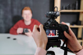 Zdjęcie "Współczesna dziewczyna na wyświetlaczu kamery domowej przed stół nagrywania mydła podejmowania klasy master" może być wykorzystywane do celów osobistych i komercyjnych zgodnie z warunkami zakupionej licencji Royalty-free. Obraz jest dostępny do pobrania w jakości wysokiej rozdzielczości do 5760x3840.